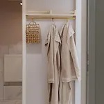Lägenheten erbjuder gästerna bekvämligheter som badlakan och handdukar i badrummet. Du har också tillgång till en separat toalett och en dusch.